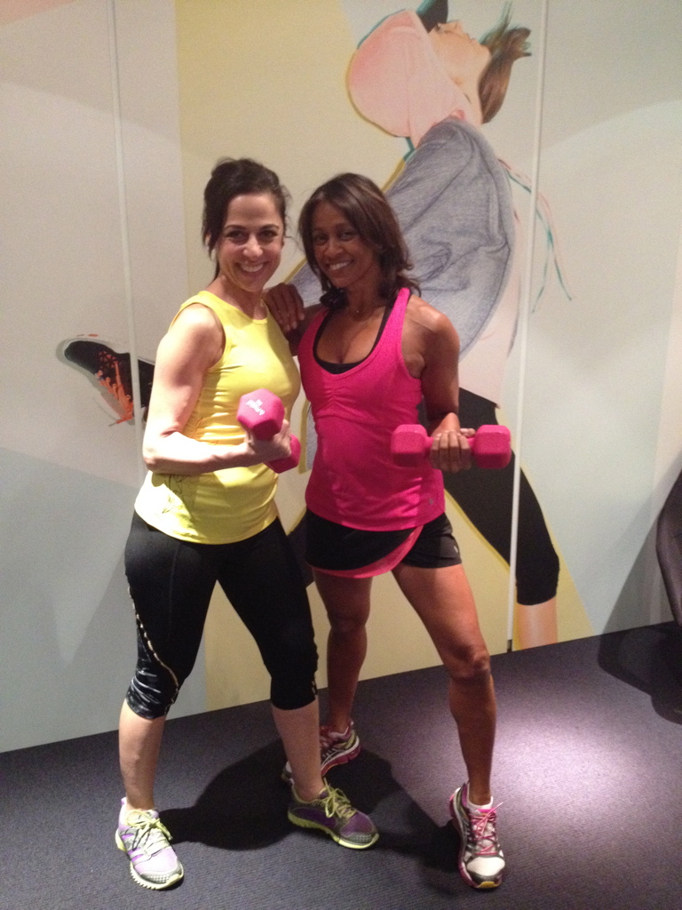 During the circuit sections (A and B) you strength train various body parts separately. This focus on training different parts of the body alternating with cardio sections seems popular in Hollywood and is also the basis for the Barry’s Bootcamp workouts (the gym chain where Pink, Jake Gylenhaal and Cameron Diaz frequent) Read about our Healthista 12-week Barry’s Bootcamp reader body makeover.