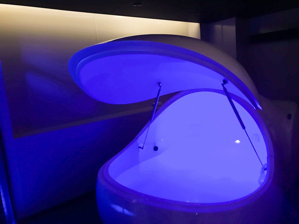 A floatation tank is a small covered tank that can usually be described as a curved pod, however, there are open floating tanks that do not have a roof to the pod. The water inside of the tank is an Epsom salt solution heated to 35.4 degrees Celcius, the temperature of the body. Floating is the only option that your body has as the salt solutions density is at 1.25 which makes it impossible to sink while in the tank. Your body is completely held up by the water returning you to a state of innate tranquility.