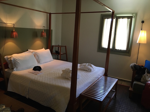 I usually associate weight loss retreats with accommodation that can be euphemistically described as ‘Spartan’ or ‘homely’ (charming, at best). But the Emelisse was a stunning surprise with its 5-star rambling luxe stone villas built into a mountainside above Eblisis Bay. London designer Sophocles Maraveyas has married Med-themes with an almost Eastern feel, kitting out the rooms in teak wood with subtle olive shades. There is every kind of comfort you could want (though the wireless was a little slow for my taste) including surround sound speakers into which you plug your iPhone.