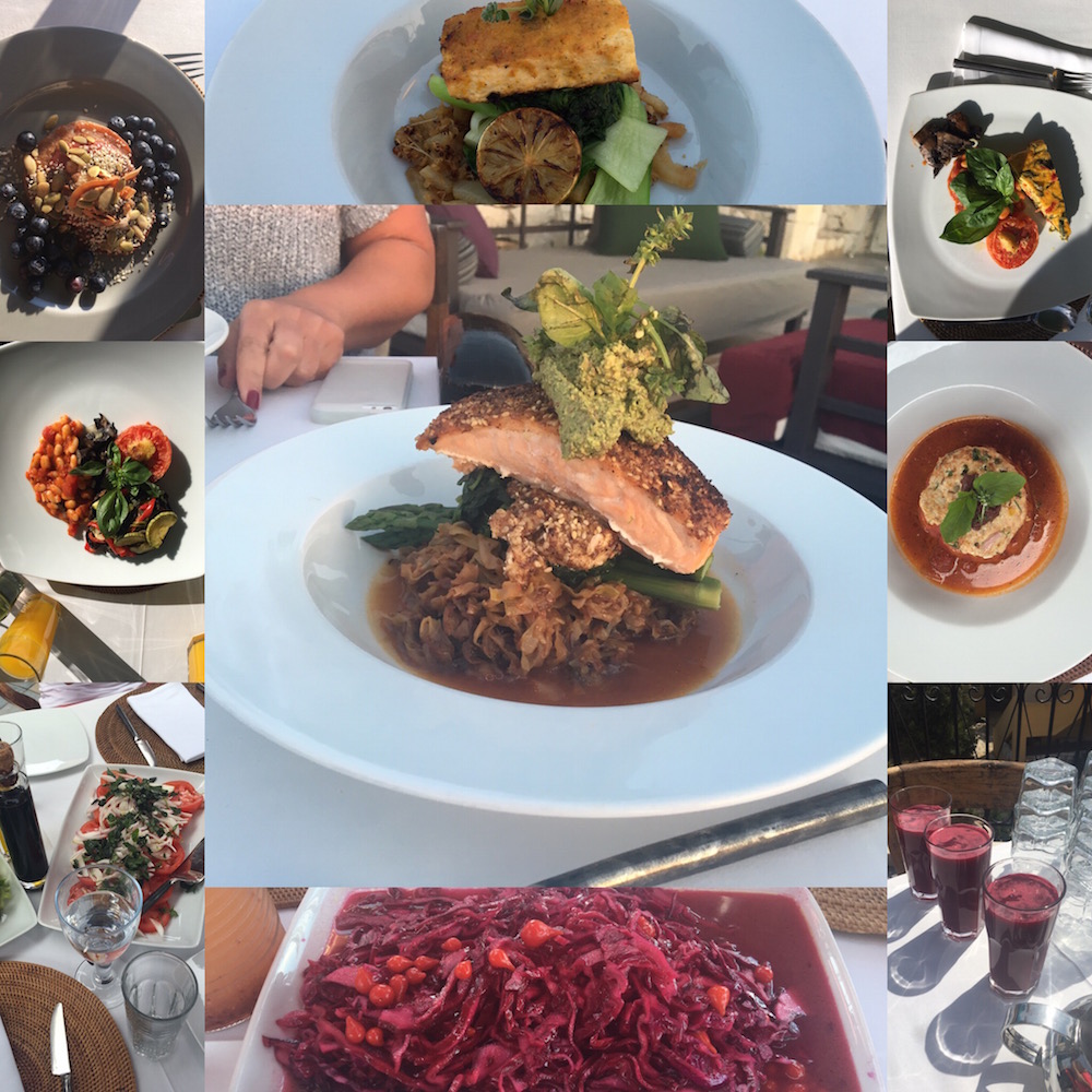 Being a quick-thinking former music DJ and producer, Wichert put the menu together and wowed both Tomlinson and his guests who went on to lose weight without feeling hungry. Wichert knew he had something going on in the healthy eating arena and when he met Henlu whilst they were both working on another weight loss retreat, the HHH idea was born. Here’s a collage of some of the meal highlights -though I don’t think it does the food justice because you can’t hear the moans and groans and exclamations of ‘I can’t believe this doesn’t contain salt/sugar/dairy!’ of the guests…